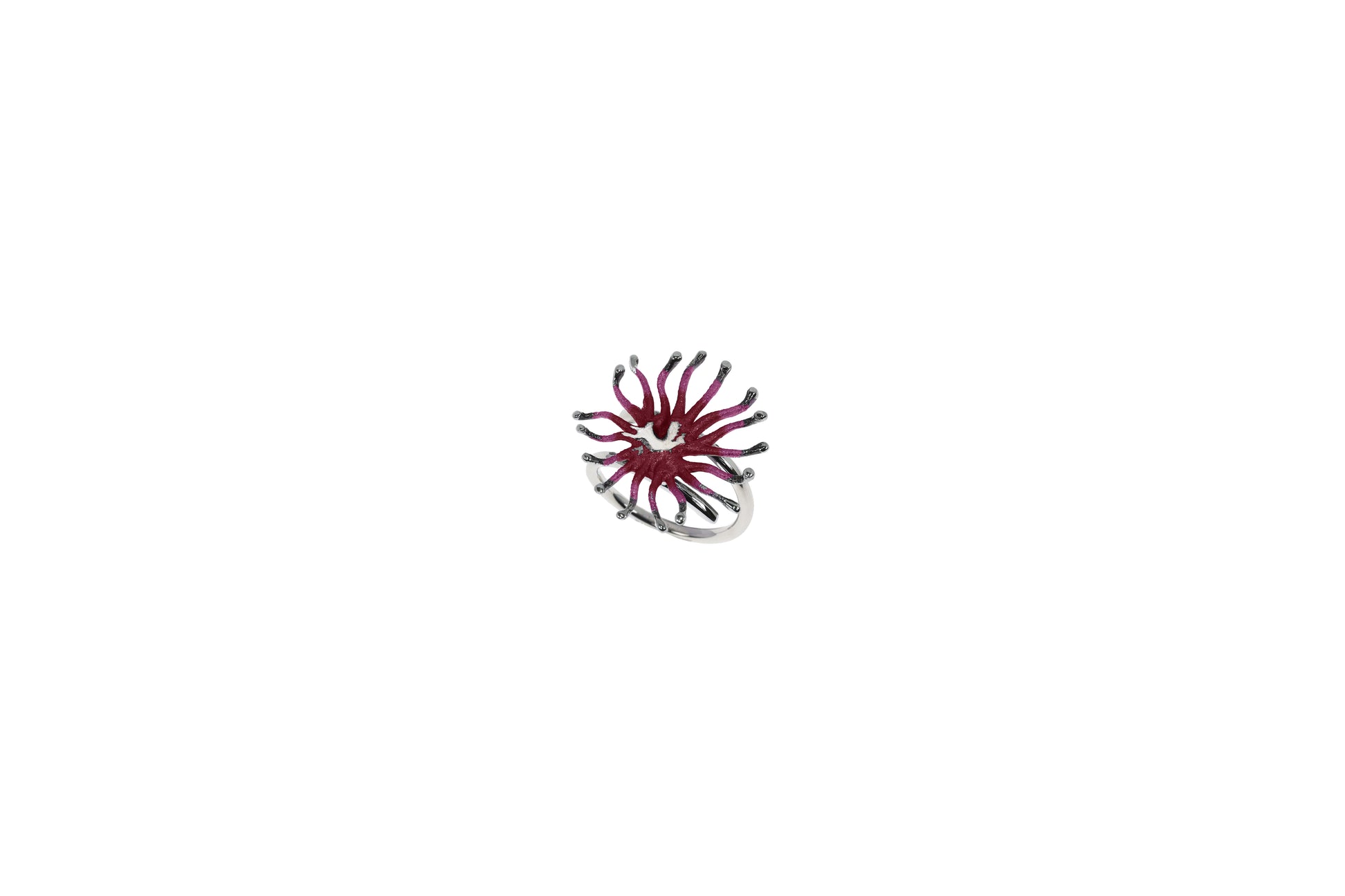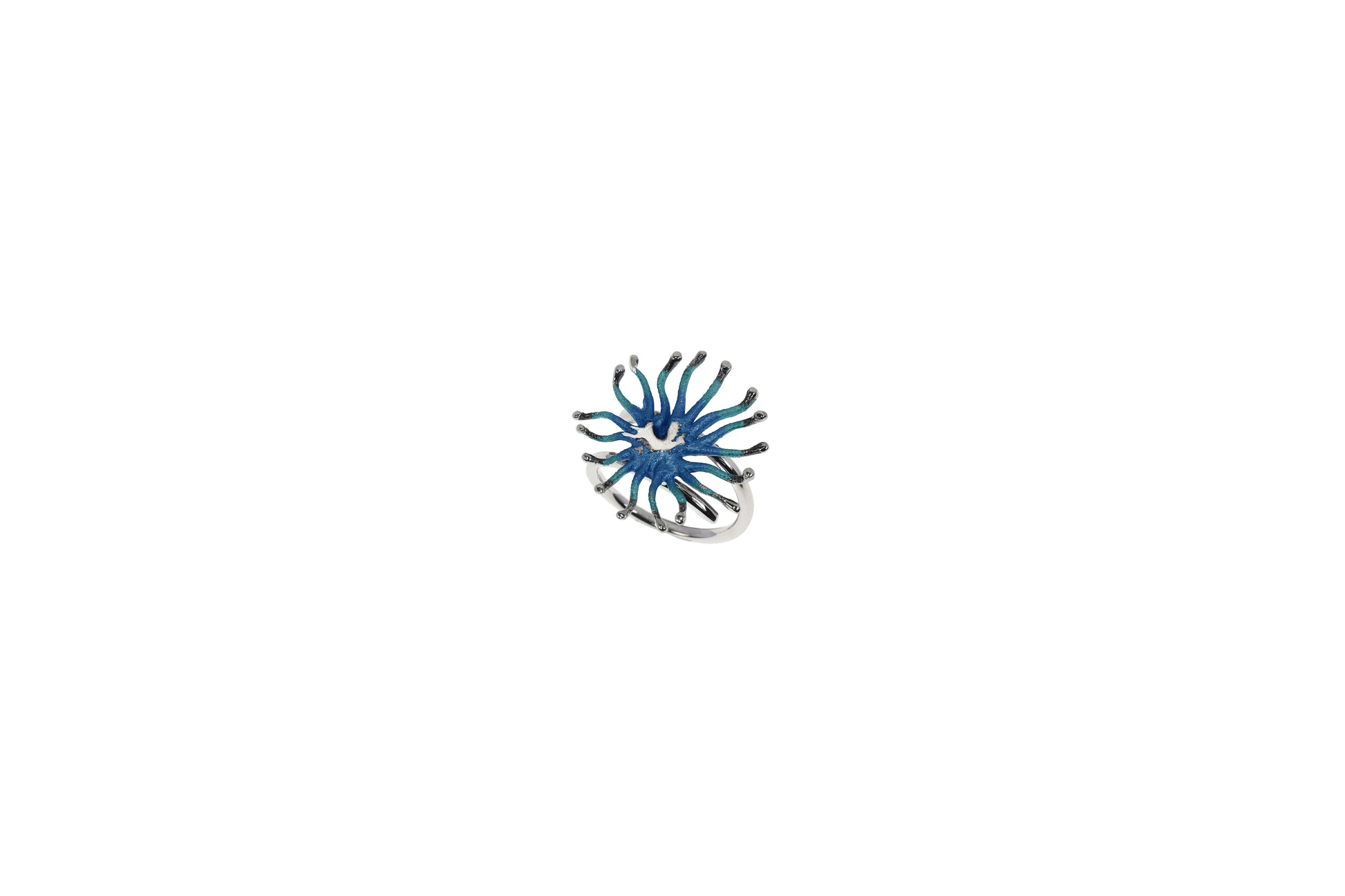 La sortija de la COLECCIÓN AGAR simboliza la conexión íntima entre naturaleza y emoción. Su pieza central en forma de alga, con 2,5 cm de diámetro, está realizada en plata de ley 925, disponible con chapado en oro, rodio y pigmentación artesanal. El aro, también en plata 925, completa una joya con alma, pensada para quienes buscan diseño contemporáneo con profundidad emocional.