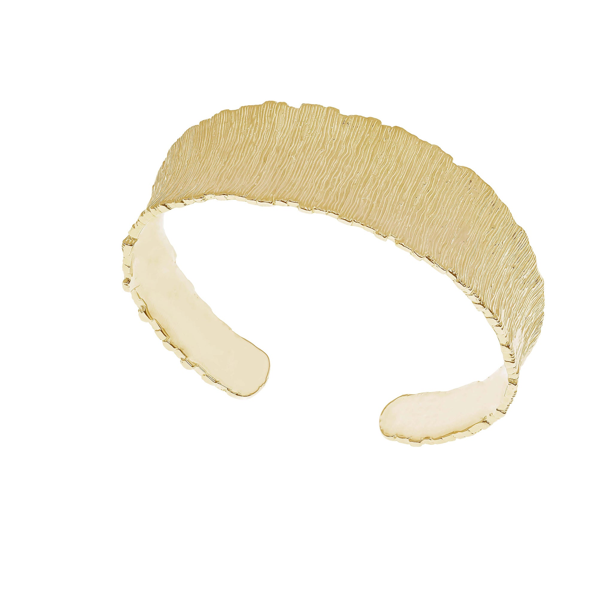 El brazalete de la COLECCIÓN HAYA representa la máxima expresión de fuerza y carácter dentro de la colección. Su pieza recta y amplia recuerda la solidez de la madera antigua, un material que conserva su belleza y su valor con el paso del tiempo.