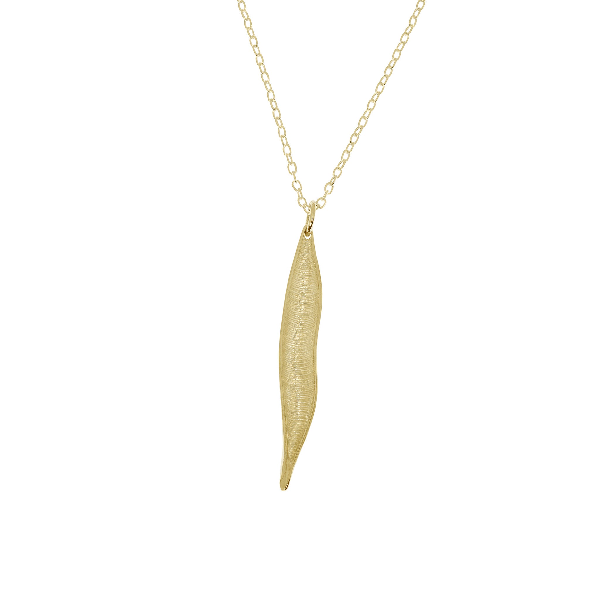 El colgante grande de la COLECCIÓN KENIA destaca por su silueta estilizada inspirada en la forma natural de una vaina seca. Su diseño alargado aporta elegancia y verticalidad, creando una pieza ligera pero con gran presencia visual.