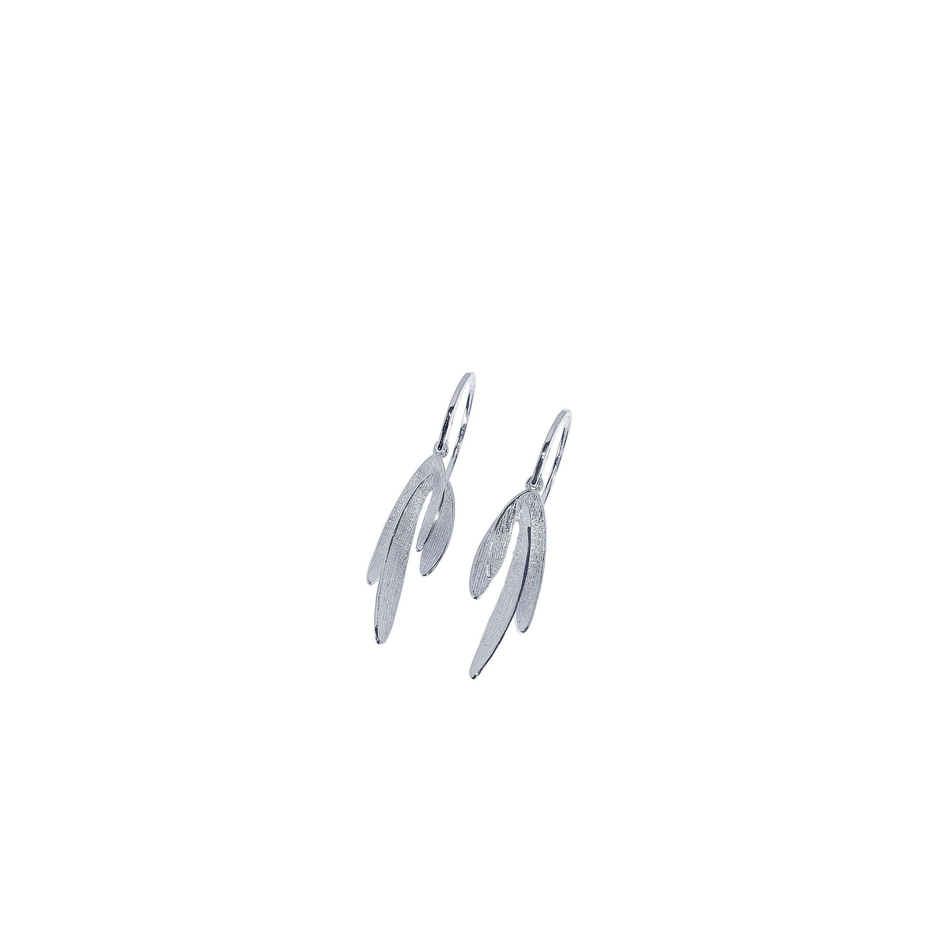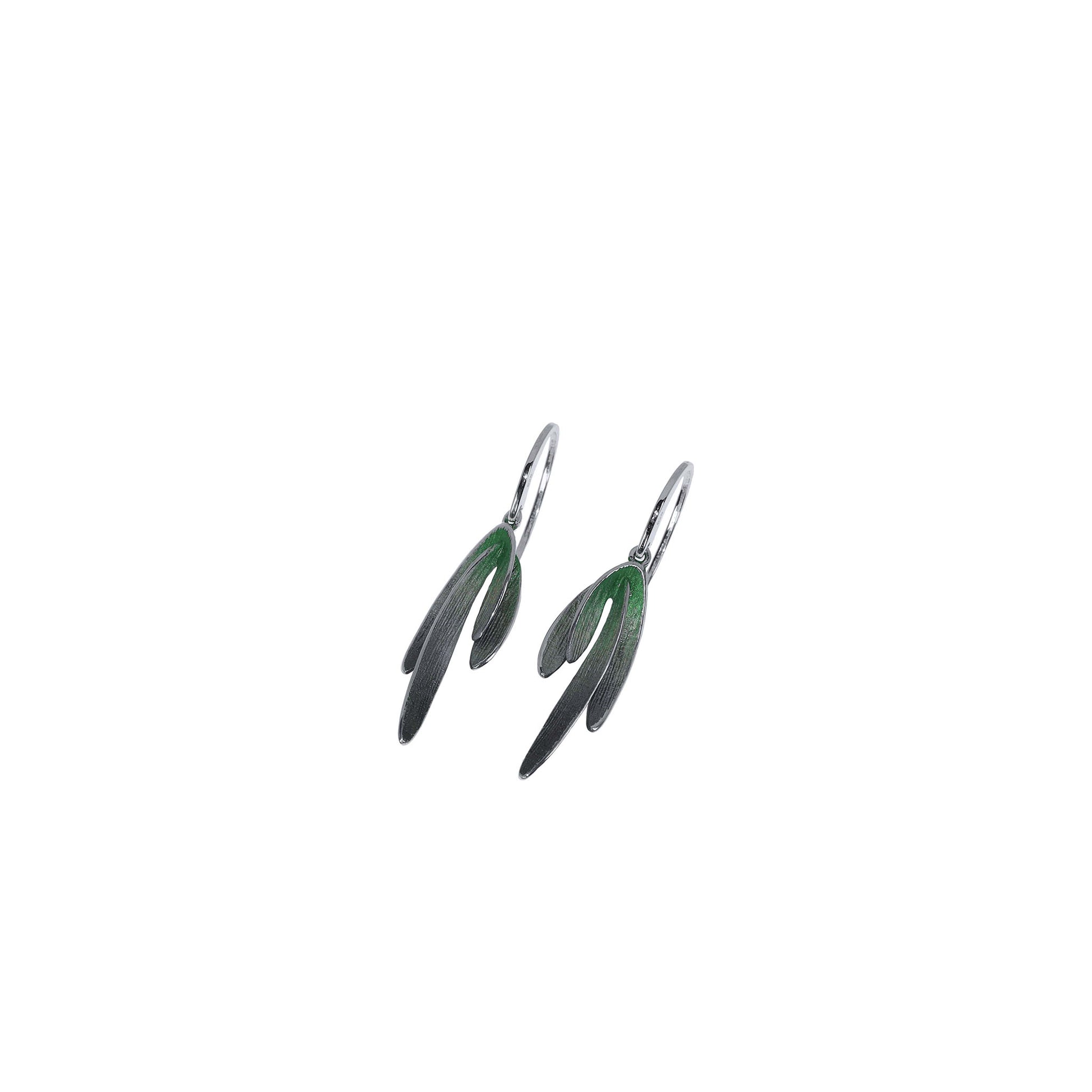Los pendientes de gancho corto medianos de la COLECCIÓN MARGOT destacan por su equilibrio entre elegancia y frescura. Una forma floral alargada que recuerda a una hoja primaveral en movimiento.