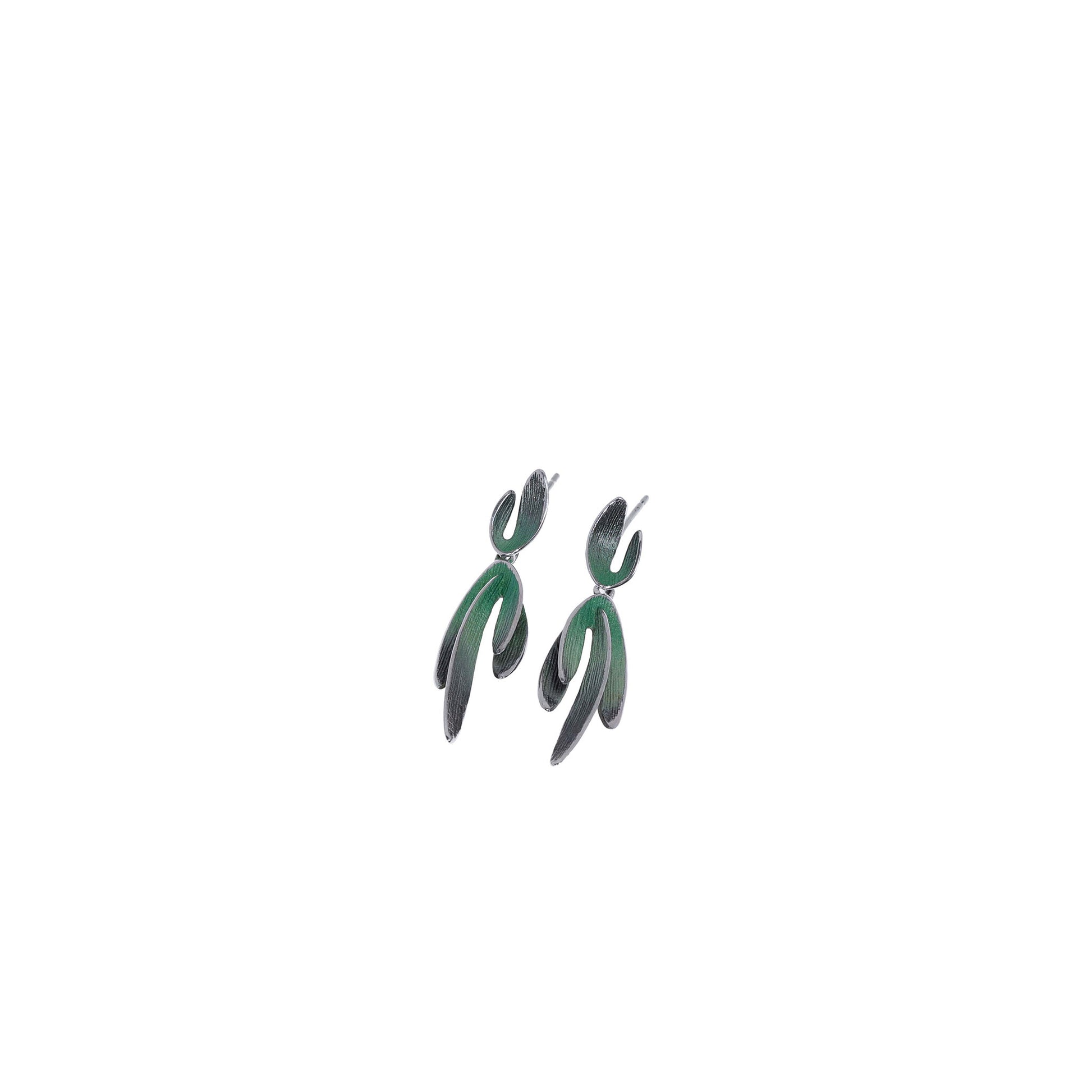 Fabricados en plata de ley 925 con chapado en oro o rodio y pigmento, presentan pétalos de 3 cm x 1,2 cm, con espigo corto y presión en plata 925.